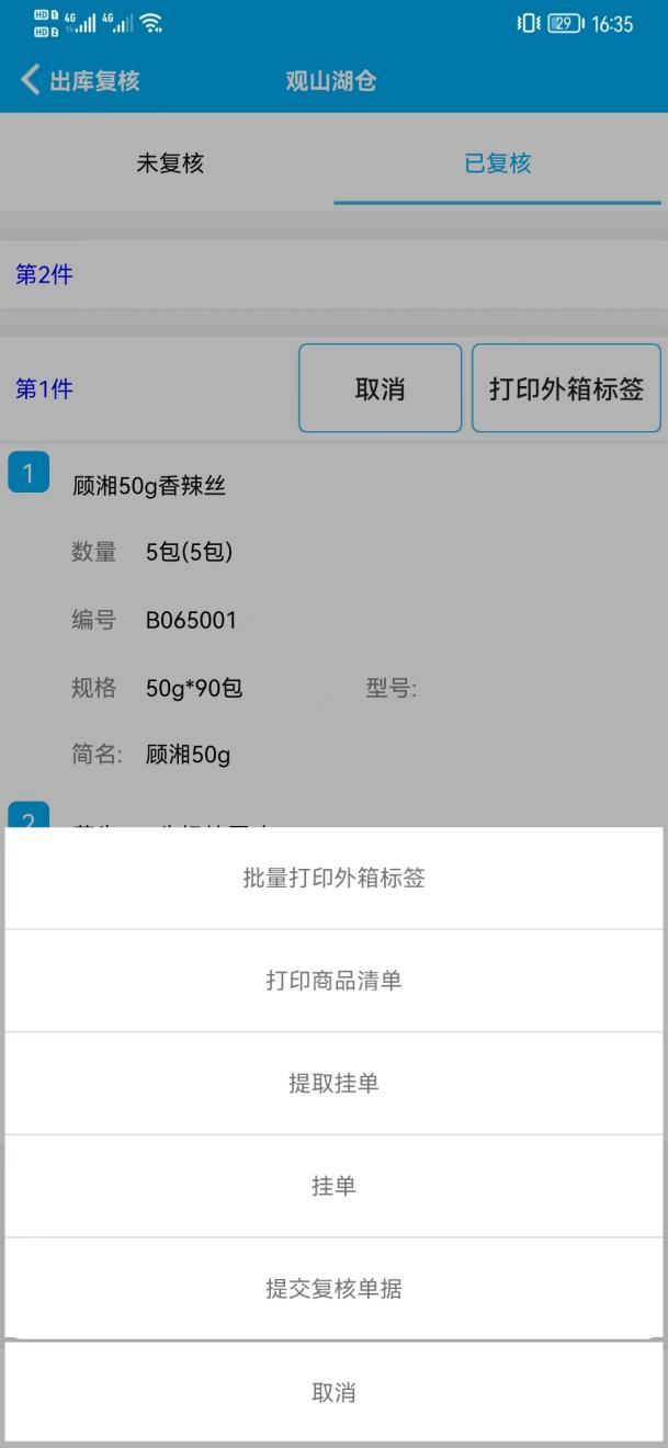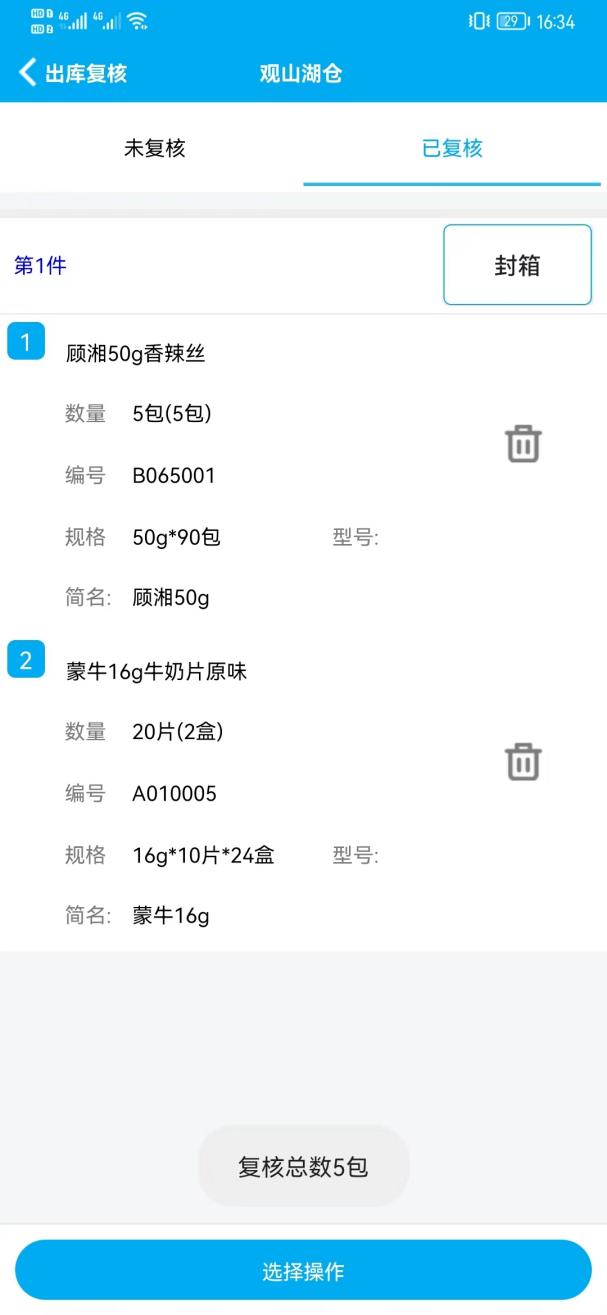 系統(tǒng)提供完善的復(fù)核流程,對出庫產(chǎn)品進行效驗核對,同時復(fù)核裝箱標(biāo)簽,司機拿貨明確不出錯,客戶收貨清晰一目了然。